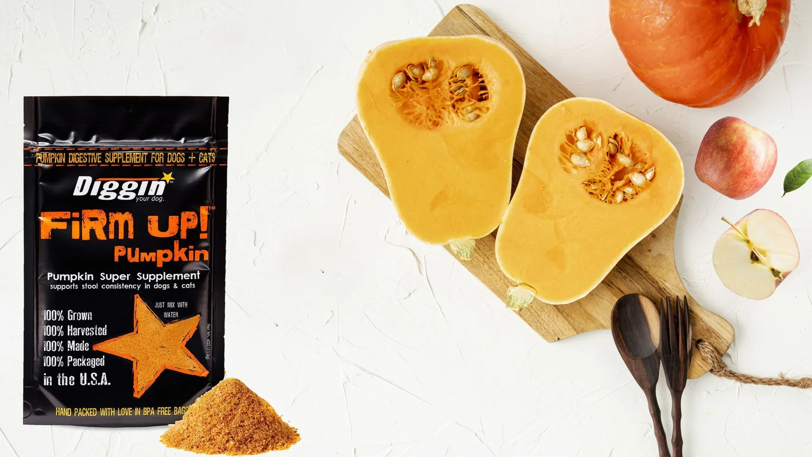 Firm Up! Prebióticos naturales de calabaza para perros y gatos es un complemento alimenticio 100% natural. Su composición a base de calabaza y pectina de manzana lo convierten en un gran aliado del tránsito intestinal. Firm Up! ayuda a perros y gatos a regular el intestino, tanto en casos de estreñimiento como de diarrea o descomposición.