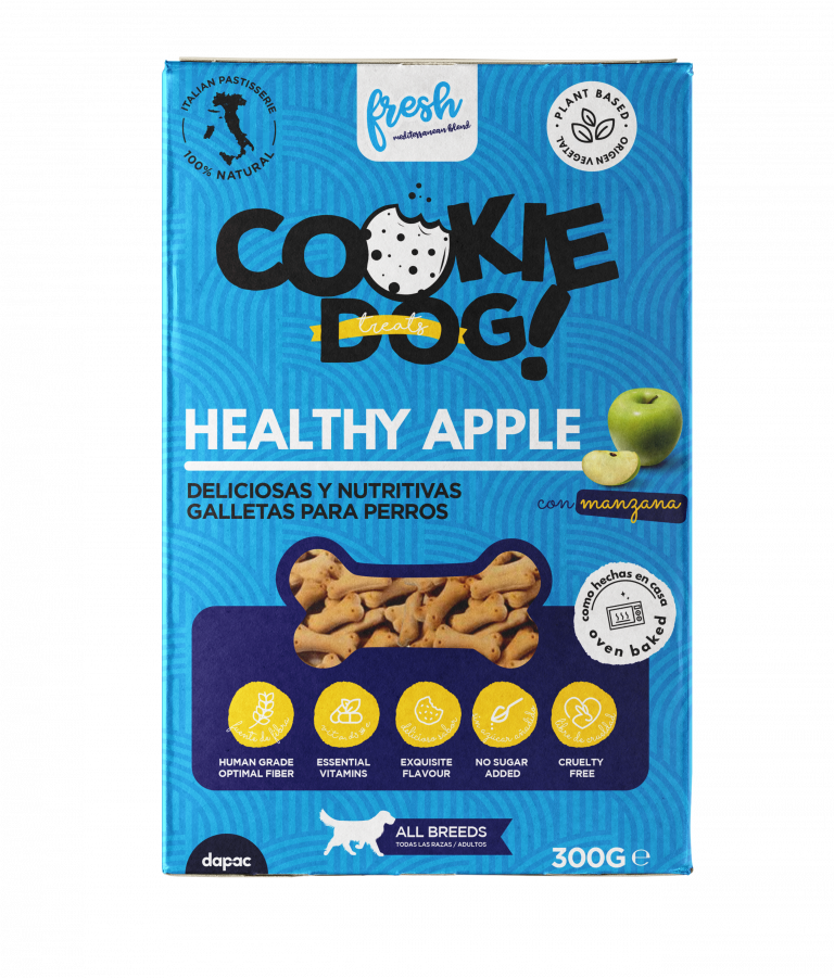 Las Fresh Cookie Dog Treats Healthy Apple son unas apetitosas galletas con manzana, naturales y sin azúcares añadidos. Horneadas con mucho amor y a fuego lento, para que el resultado sea terriblemente crujiente.