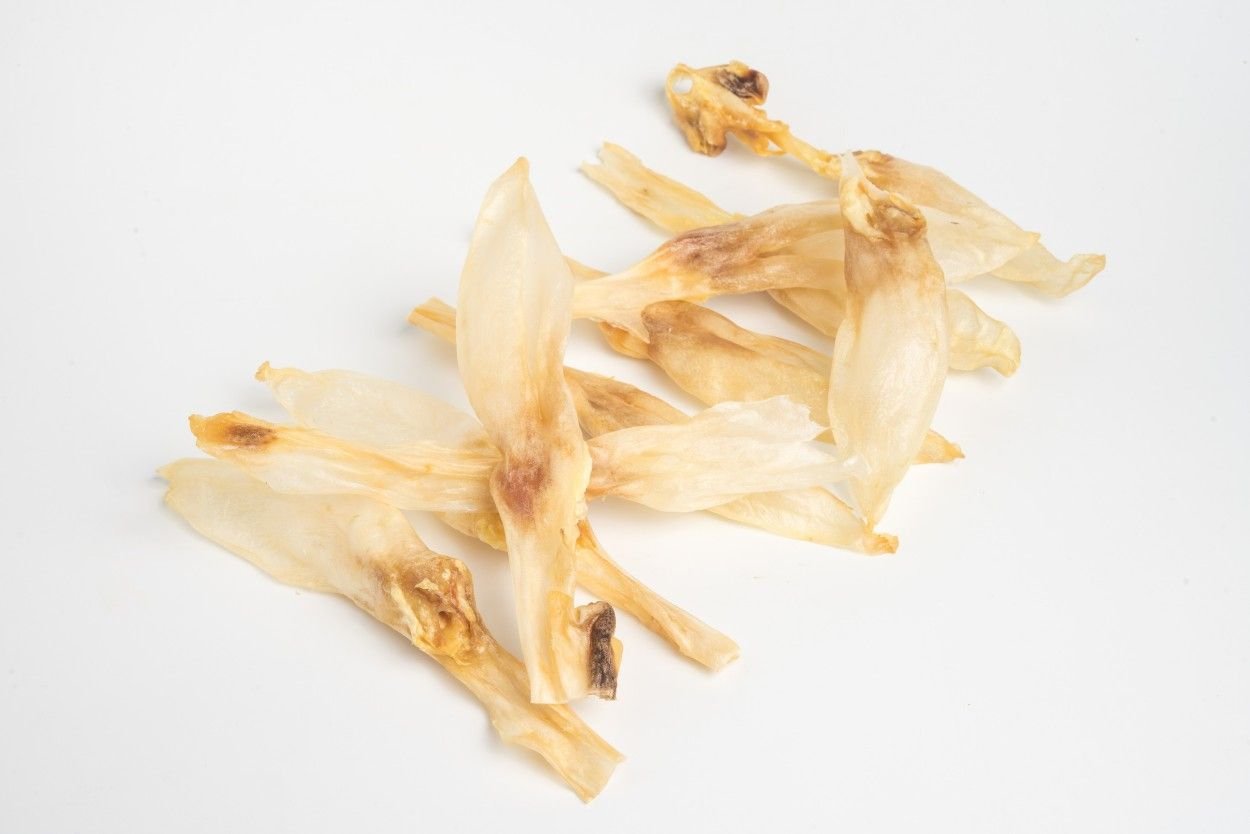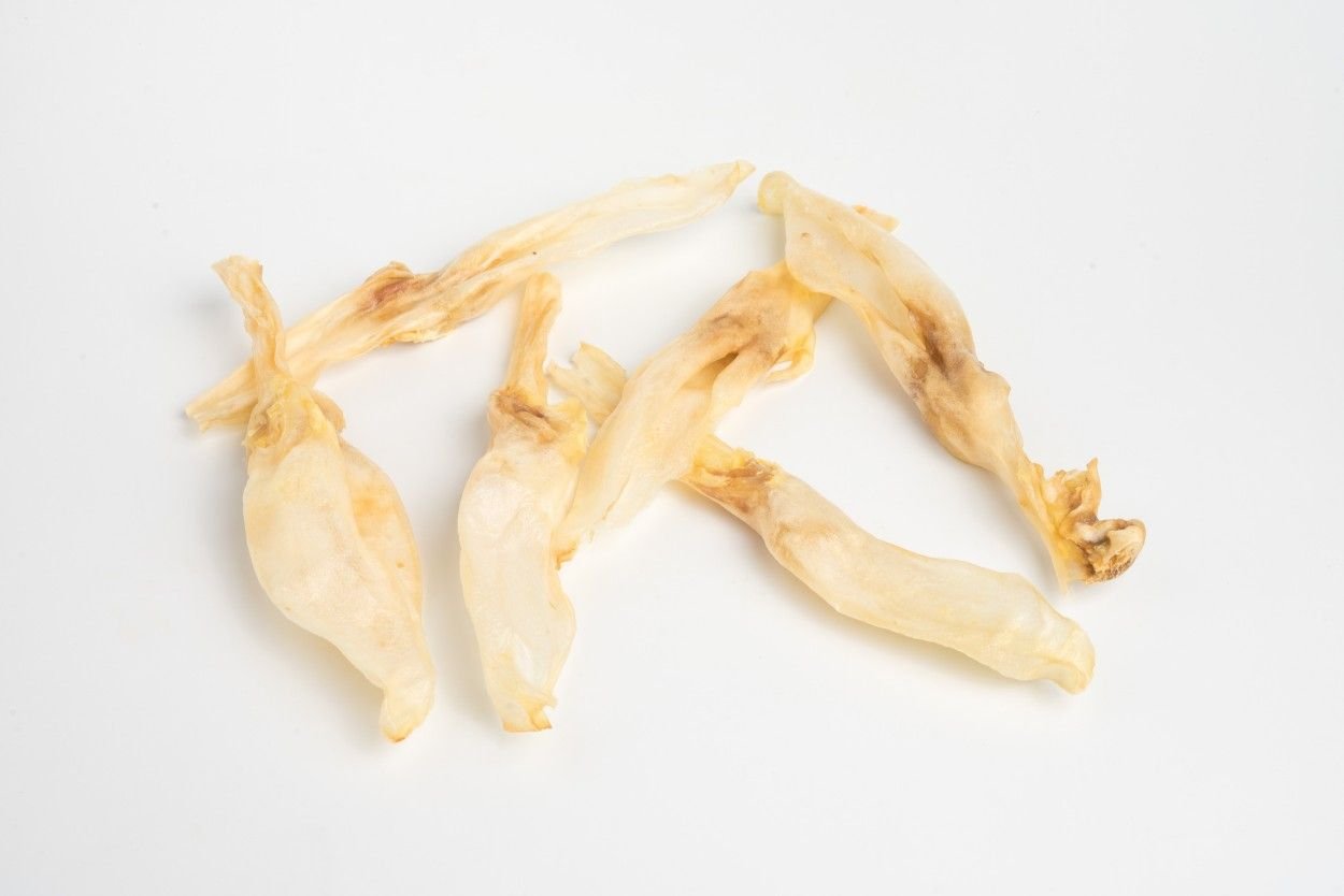 Son un perfecto premio o snack para ser masticado, ideal para perros sensibles o con intolerancias alimentarias. Este producto presenta un alto contenido en proteínas y bajo en grasas.