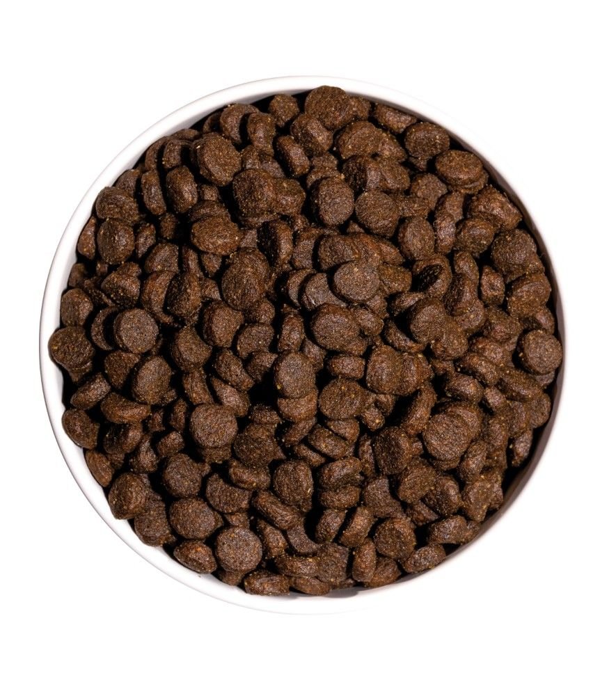Pollo fresco* (25 % mín. antes de la extrusión), pavo fresco* (25 % mín. antes de la extrusión), pollo deshidratado (13 %), guisantes enteros* (7 %), grasa avícola (preservada con antioxidantes naturales), raíces de mandioca* (5 %), pescado deshidratado (anchoveta, jurel y caballa), cerdo deshidratado (4 %), patata deshidratada* (4 %), proteína hidrolizada de pollo, huevo deshidratado* (1 %), manzana* (1 %), vaina de algarroba* (1 %), levadura de cerveza* (1 %), aceite de pescado (preservado con antioxidantes naturales), pulpa de remolacha, sal gema*, alfalfa deshidratada*, fructo y manano oligosacáridos, algas marinas deshidratadas* (500 mg/kg), glucosamina (500 mg/kg), yucca shidigera, condroitín sulfato (100 mg/kg), arándanos* (100 mg/kg), té verde* (80 mg/kg), equinácea* (80 mg/kg), flor de manzanilla* (80 mg/kg), hinojo* (80 mg/kg), tomillo* (80 mg/kg). *Ingredientes naturales